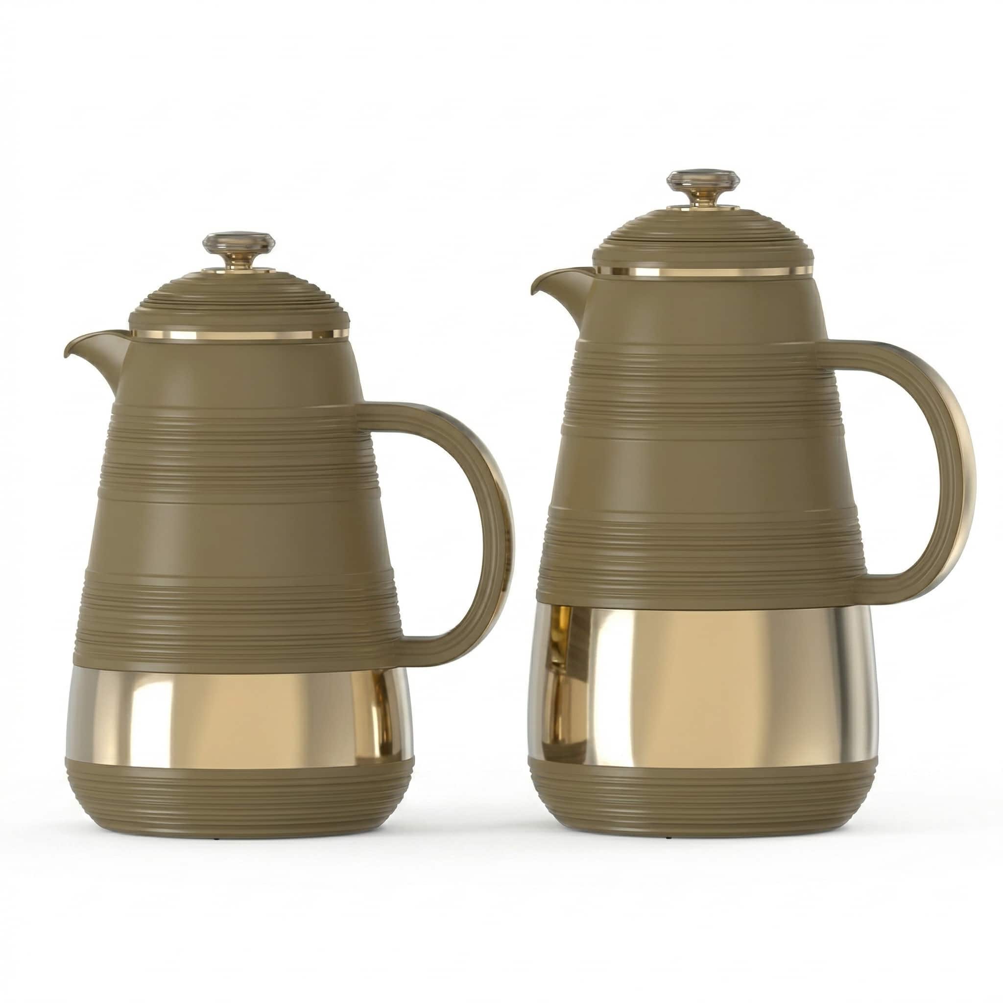 A high-quality 2-piece vacuum flask set with 1.0L and 0.7L capacities, designed to keep beverages hot or cold for extended periods. Finished in a rich dark brown color, it delivers a classic and sophisticated appearance suitable for any environment, including home, office, or travel. Built for durability and everyday convenience, it ensures reliable performance with an elegant touch.